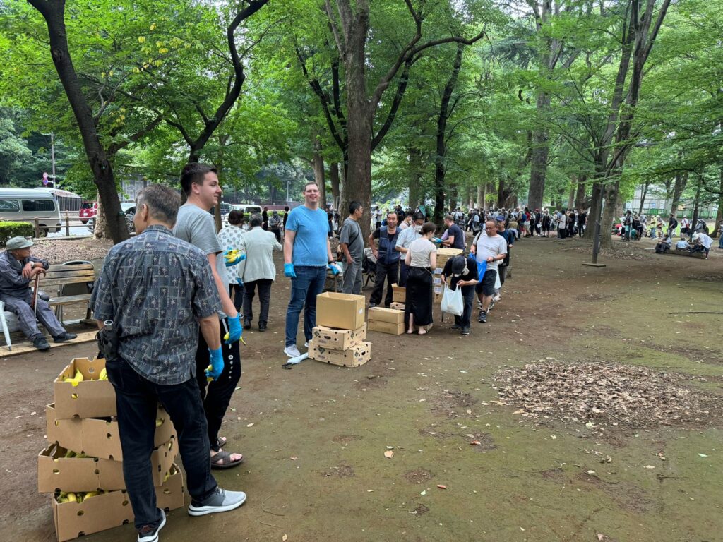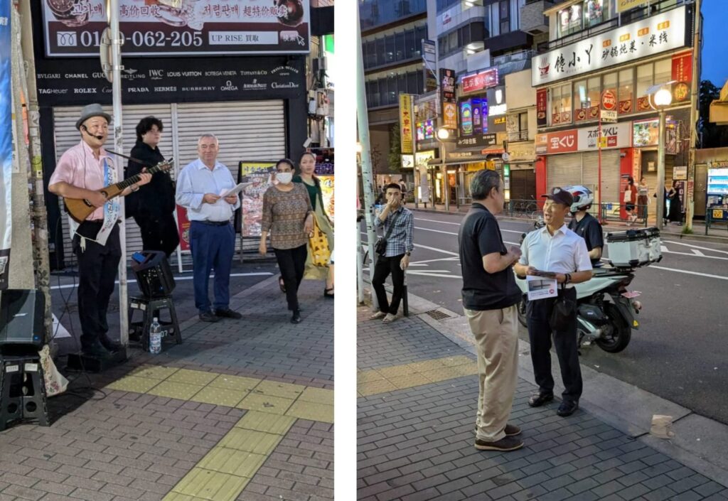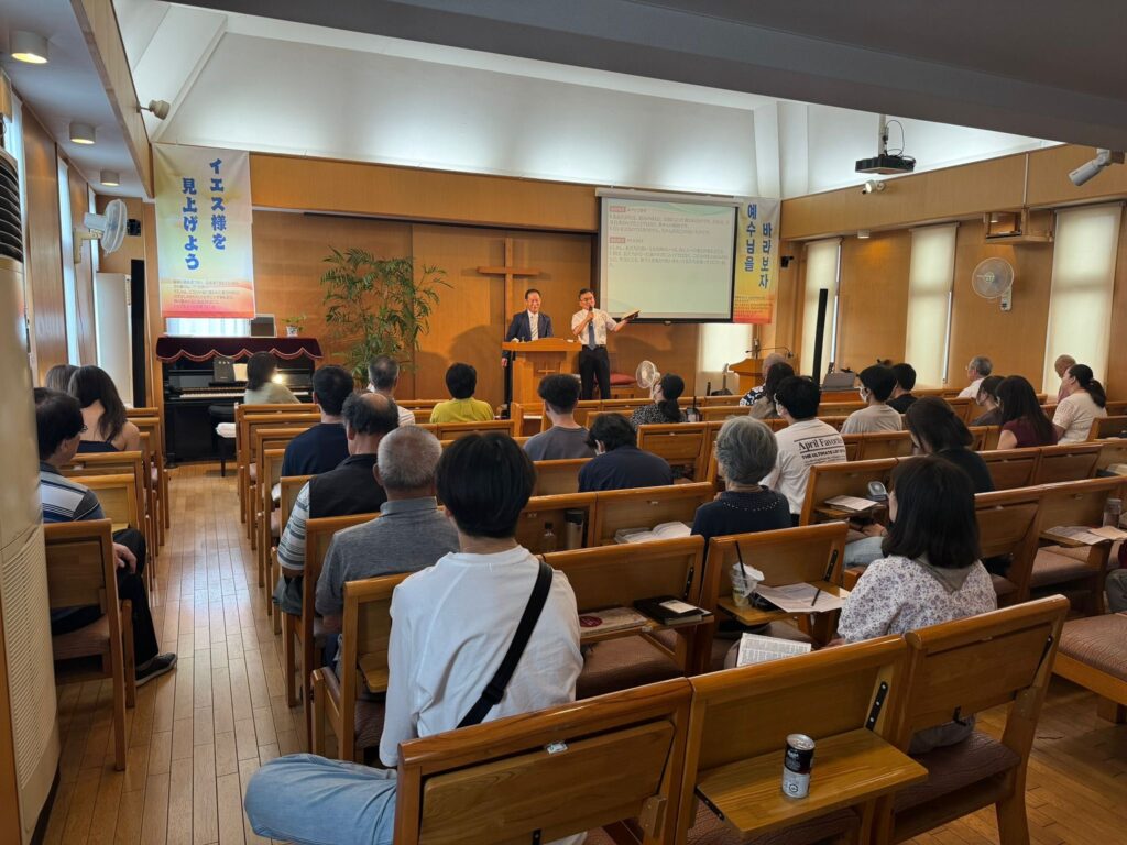 Nach den ersten koreanischen und darauffolgendem japanischen Gottesdienst nahmen wir eine gemeinsame Mahlzeit mit den Gemeindemitgliedern ein, und nach der Gemeinschaft durften wir mit einem Straßenevangelisten auf die Straßen gehen und Flyer über den Glauben und Einladungen zum Gottesdienst verteilen.